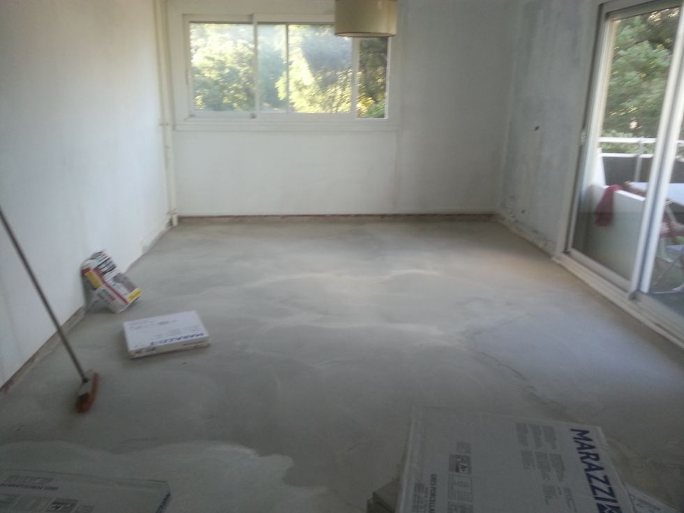 Nous avons réalisé un ragréage sur toute la surface de cette appartement à Marseille 13010 .