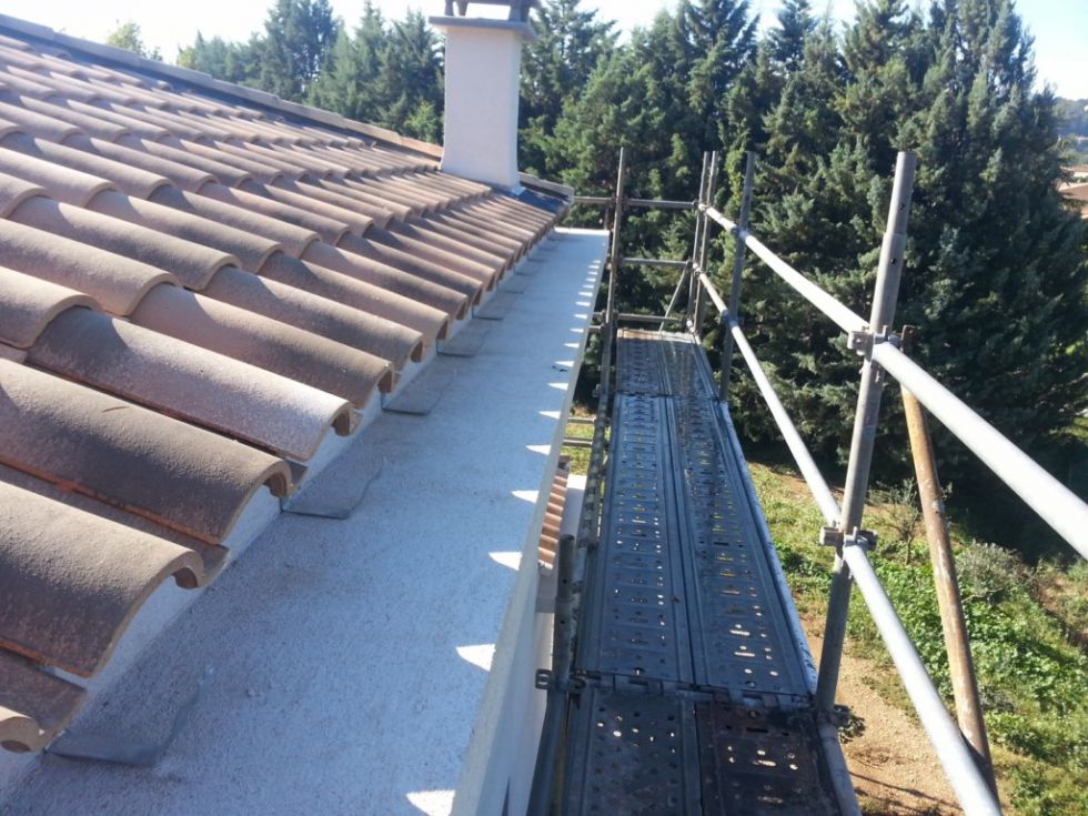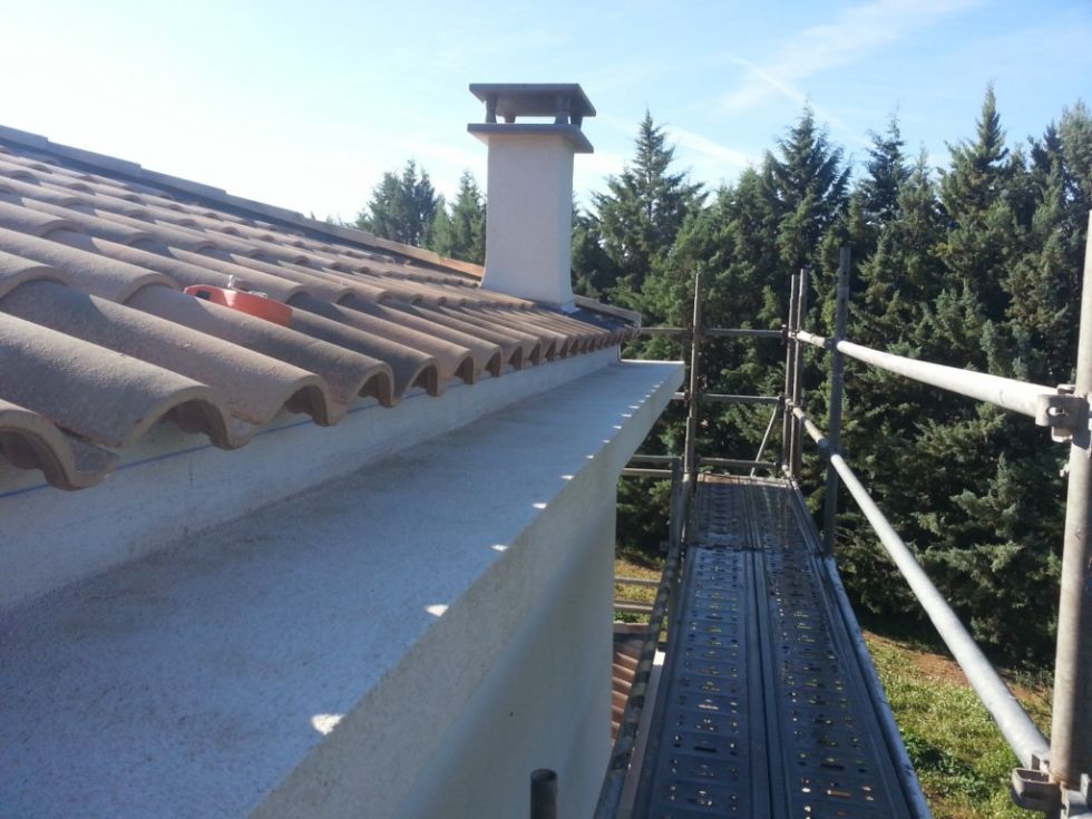 La pose d'un échafaudage complet a était nécessaire pour réalisé la pose de ces gouttières mouluré en zinc.