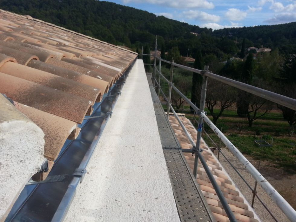 Afin de récupéré les eaux pluvial d'une toiture sainte baume rénovation a effectué la pose de gouttières mouluré en zinc.
