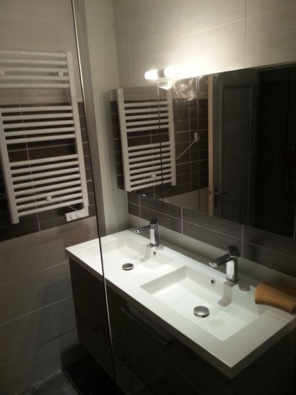 La faïence mural a été remplacer par un carrelage murale en 30X60 , le carrelage au sol a était réaliser avec une colle carrelage sur carrelage.